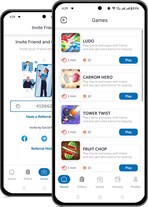 Play daily games, spin & scratch, math quizes and earn coins. also invite your friend you will get invite bonus when your friend submit his first redeems